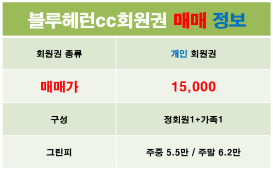 블루헤런cc회원권 매물 안내(2020.06.16기준)