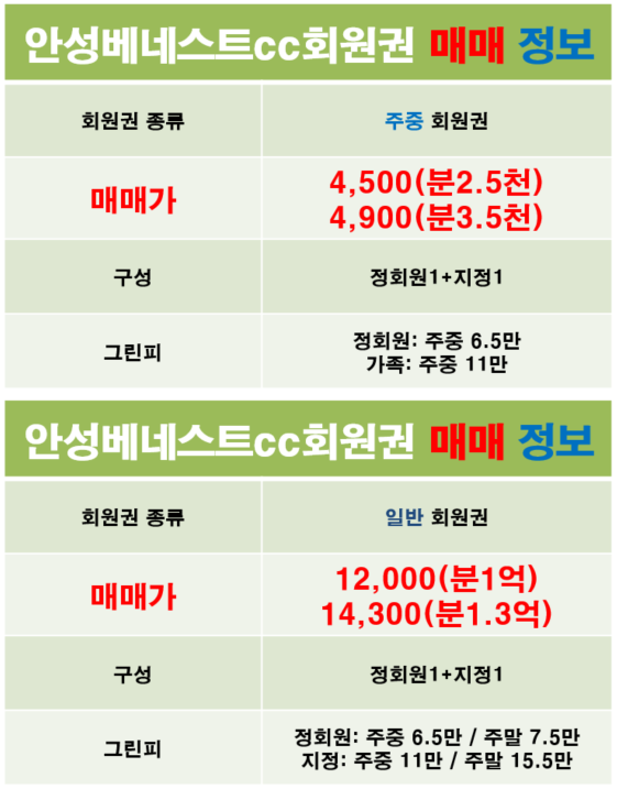 안성베네스트cc회원권/안성베네스트골프장회원권 최근시세 및 거래방법 안내