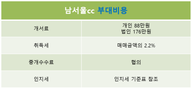 남서울cc회원권 정보 및 시세 거래방법 안내