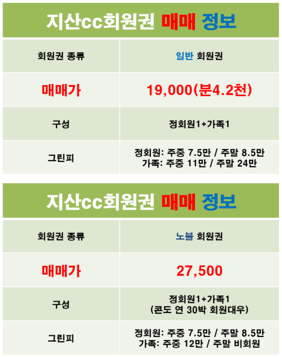 지산cc회원권 매물 안내(2020.06.22기준)