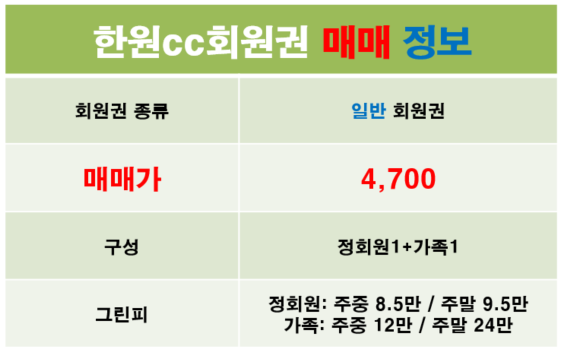 한원cc회원권/한원골프장회원권 시세 및 거래방법 안내