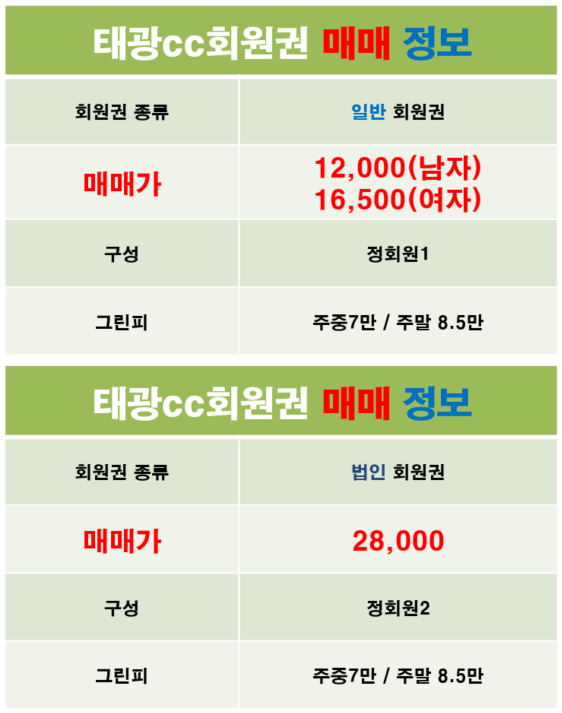 태광cc회원권/태광골프장회원권 시세 및 거래방법 안내