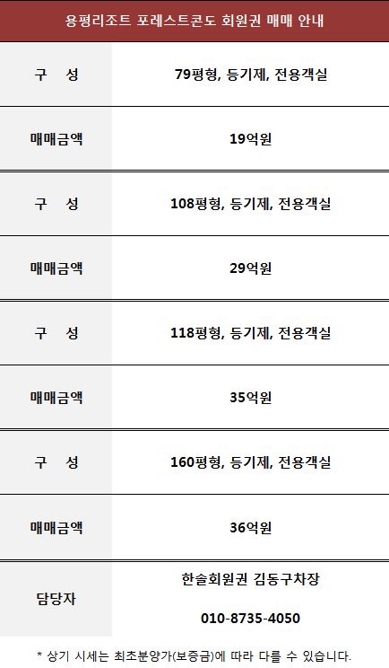 용평리조트 포레스트콘도 회원권 매매 안내