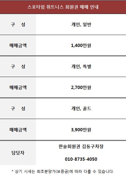 스포타임 휘트니스 회원권 매매 안내