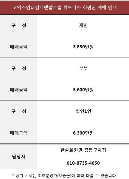 코엑스인터컨티넨탈호텔 휘트니스 회원권 매매 안내