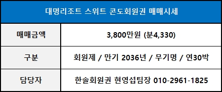 ◀ 대명리조트회원권 스위트 매매가격 ▶