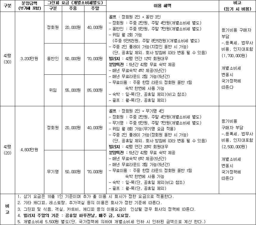 제주 타미우스cc회원권 골프앤빌리지 42평형 창립 분양 안내
