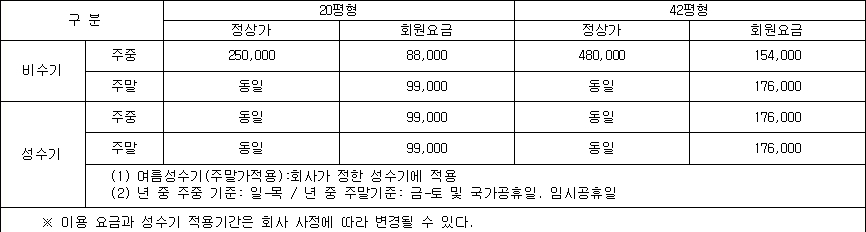 ▣ 타미우스 빌리지 이용요금 안내 ▣