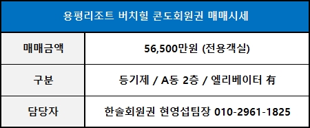 용평리조트 버치힐콘도 45평형 전용객실 풀구좌 추천매물 (2020.08.12.) 안내