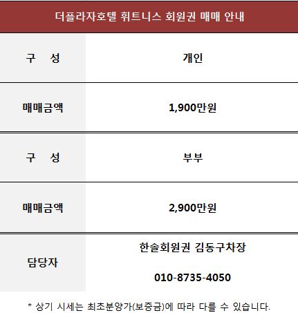더플라자호텔 휘트니스 회원권 매매 안내