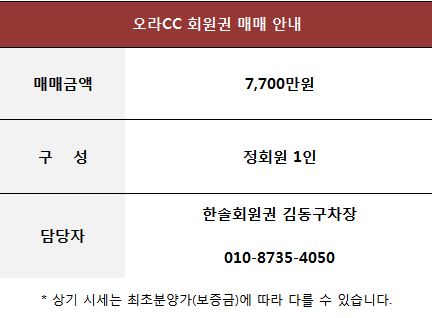 제주 오라CC 골프 회원권 매매 안내