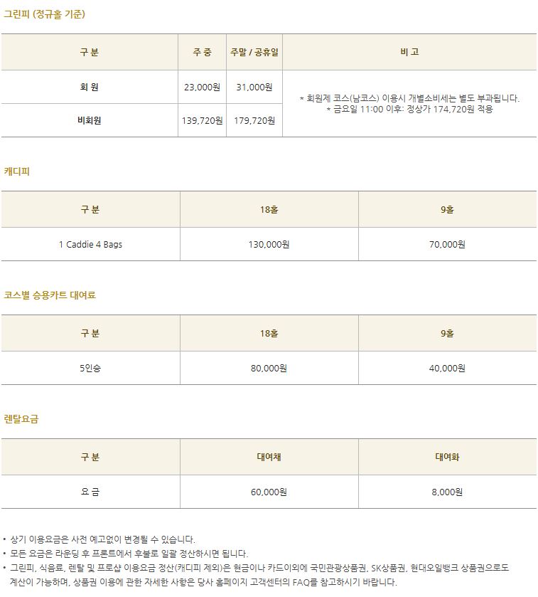 정회원 그린피 주중 2만3천원, 주말 3만1천원
