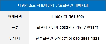 ■ 대명콘도회원권 패밀리 추천매물 안내 ■