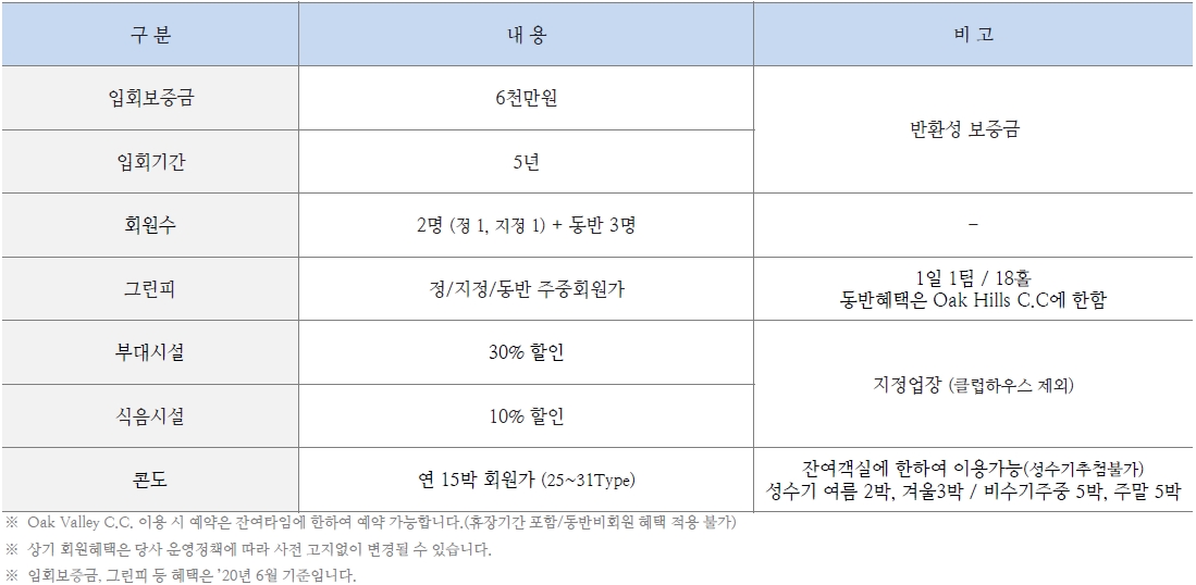 ■ 오크힐스cc 주중특별회원권 입회안내 ■