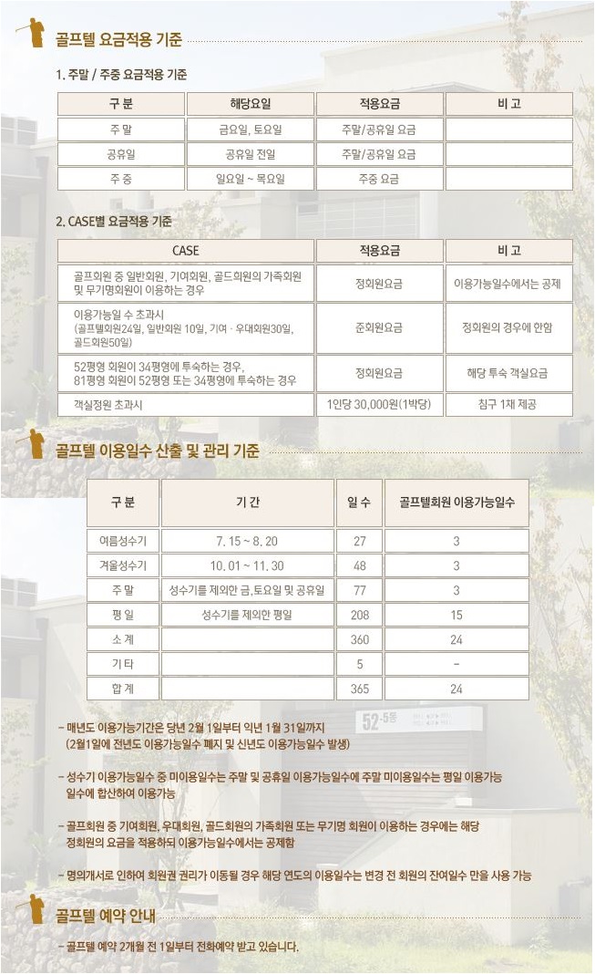 골프텔 34평, 52평 연간 24박 회원 대우