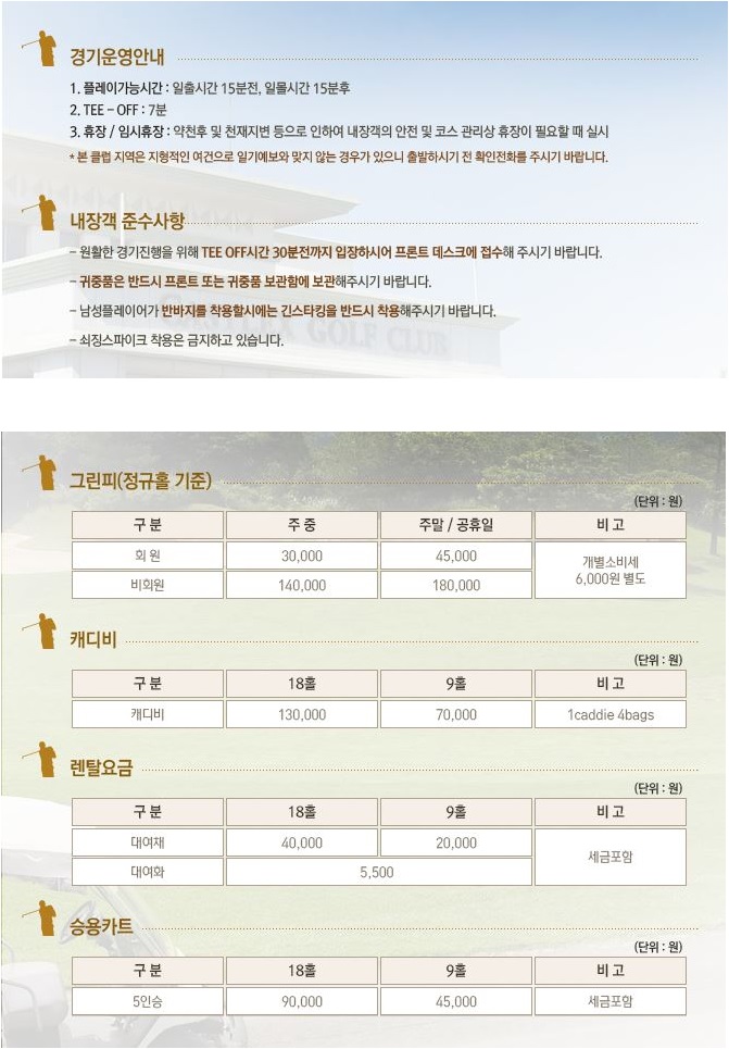 정회원 동반인 전원 그린피 주중 7만2천원, 주말 9만2천원