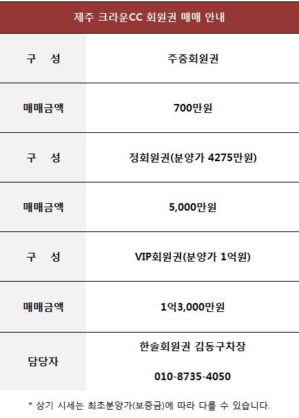 - 정회원권(분양가 4,275만원 / 4,500만원 / 6,500만원 / 6,650만원)