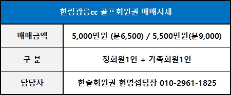 ◀ 한림광릉cc 골프회원권 매매가격 ▶