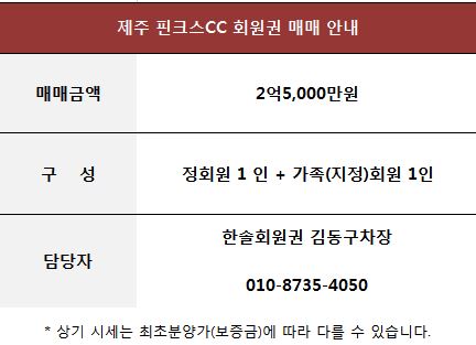제주 핀크스CC 골프 회원권 매매 안내