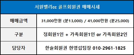 ◀ 서원밸리cc 골프회원권 매매가격 ▶