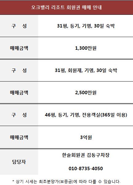 원주 오크밸리리조트 회원권 매매 안내