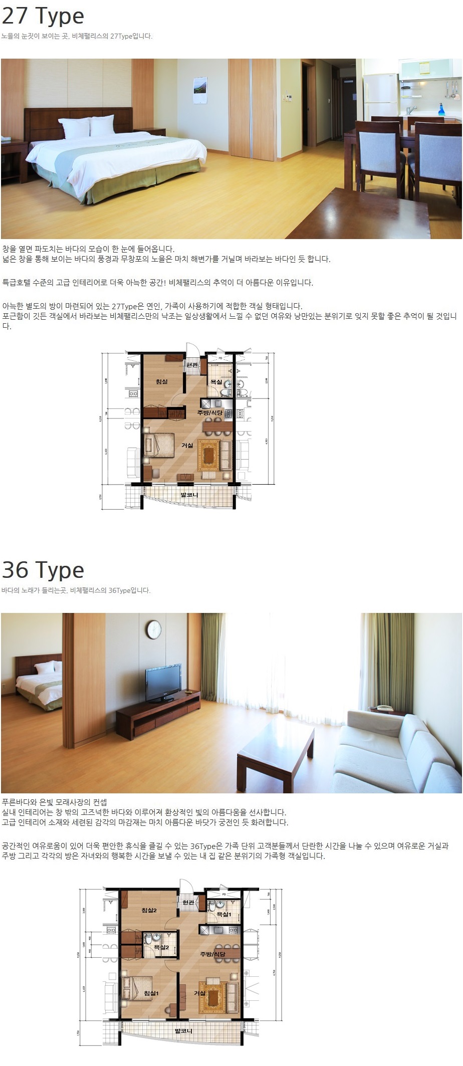 객실안내 : 27평형(85객실), 36평형(149객실)