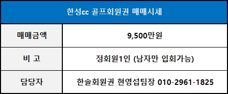 ■ 한성cc회원권 급매물 안내 ■