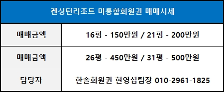 ◀ 켄싱턴리조트회원권 매매가격 ▶