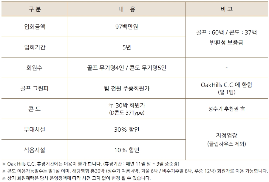 ◀ 오크힐스cc 주중무기명회원권 안내 ▶
