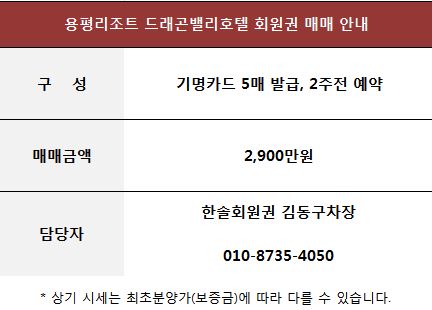 용평리조트 드래곤밸리호텔 회원권 매매 안내