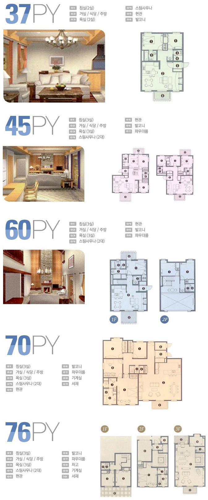 37평형(172객실), 45평형(174객실), 60평형(58객실), 70평형(32객실), 76평형(14객실)