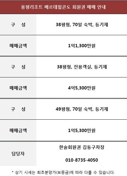 용평리조트 베르데힐콘도 회원권 매매 안내
