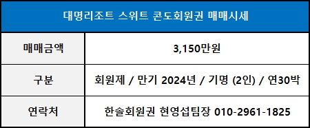 ■ 대명리조트회원권 스위트 추천매물 안내 ■