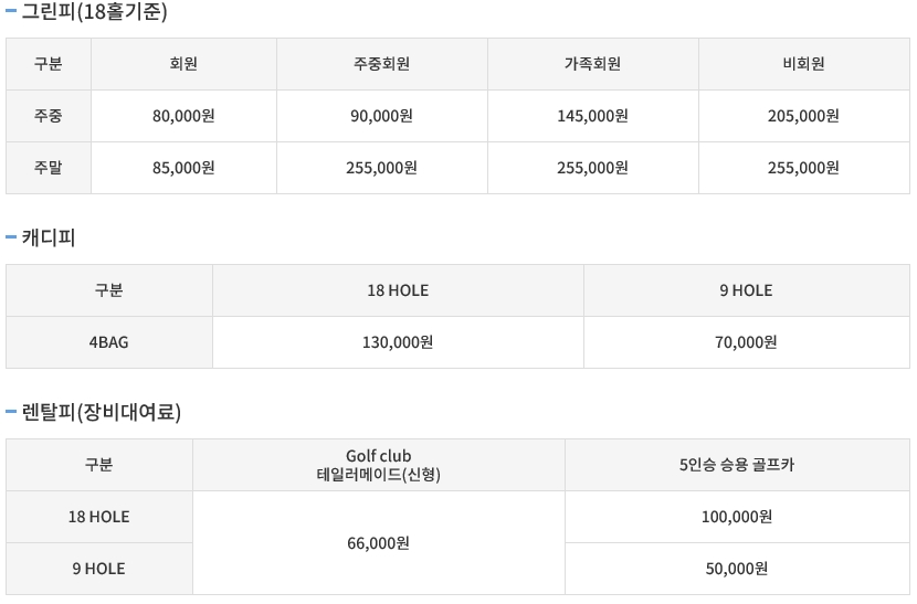 ▣ 김포cc 골프 그린피 및 이용요금 안내 ▣