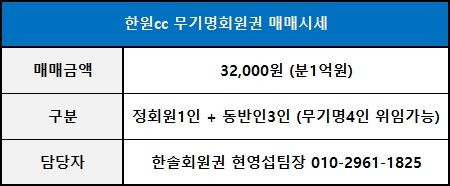 ■ 한원cc 무기명회원권 추천매물 안내 ■