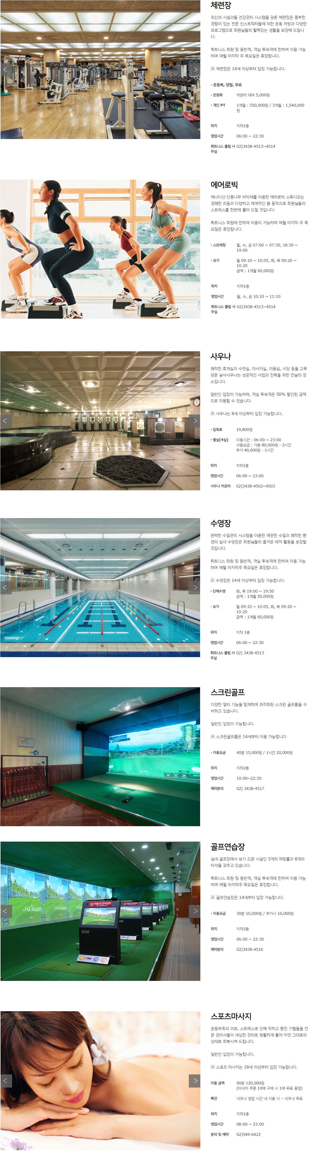 주요시설 : 체련장, 사우나, 실내 수영장, 골프 연습장 등