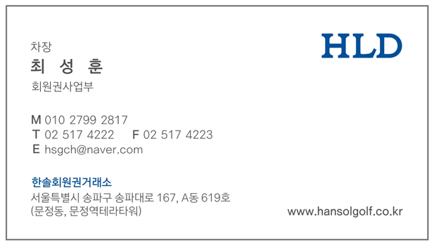 한솔회원권거래소 최성훈 차장의 개인 블로그입니다. 안전한 회원권 거래 도와드리겠습니다.
