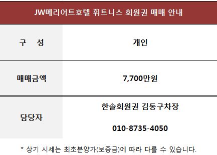 JW메리어트호텔 휘트니스 회원권 매매 안내