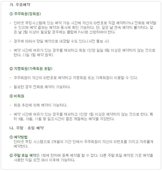 운영 및 코스관리, 회원혜택등이 회원을 위해 관리되고 있습니다.