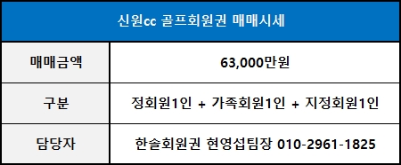 ◀ 신원cc 골프회원권 매매가격 ▶