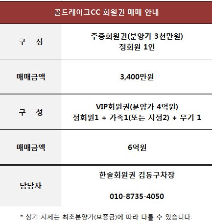 골드레이크CC 골프 회원권 매매 안내