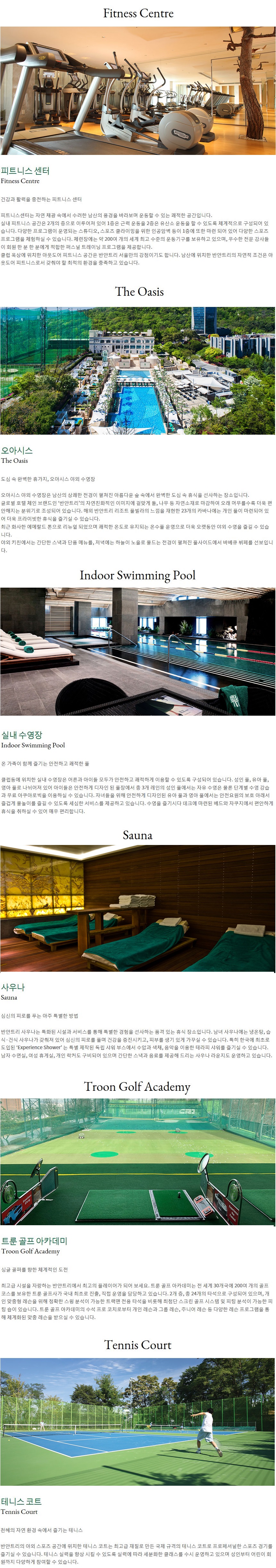 주요시설 : 키즈클럽, 체련장, 실내외 수영장, 사우나, 골프연습장, 아이스링크 등