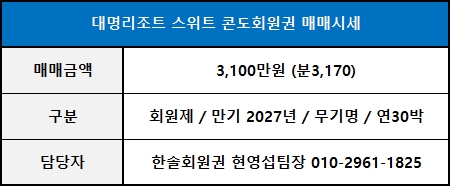 ■ 대명콘도회원권 스위트 추천매물 안내 ■