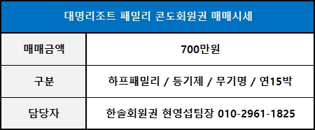 ■ 대명콘도회원권 패밀리 추천매물 안내 ■