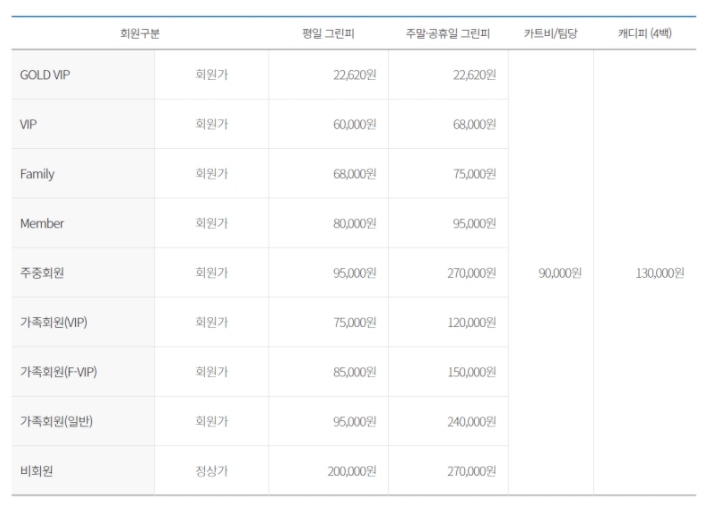 ◈ 스카이밸리cc 이용요금 안내 ◈