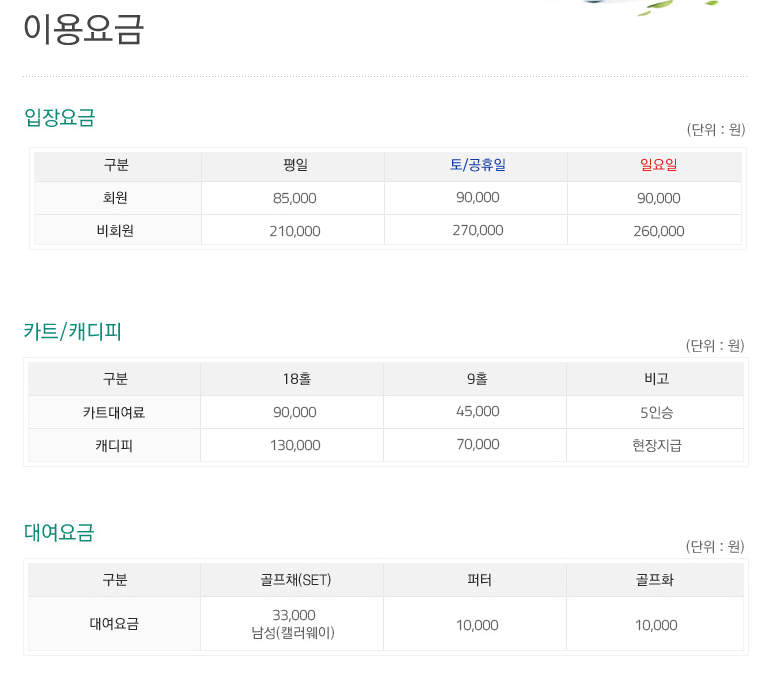 ◀ 양주cc 이용요금 안내 ▶
