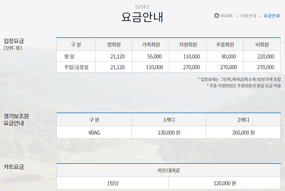 ▶ 이스트밸리cc 이용요금 안내 ◀