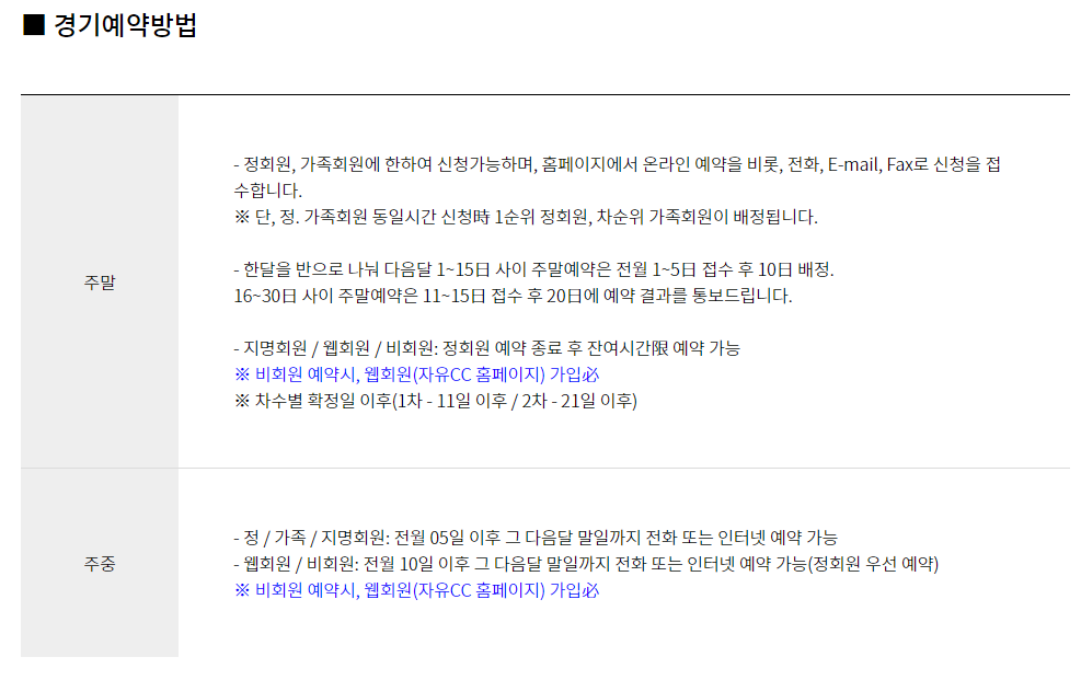 ■ 자유cc 예약 및 위약 안내 ■