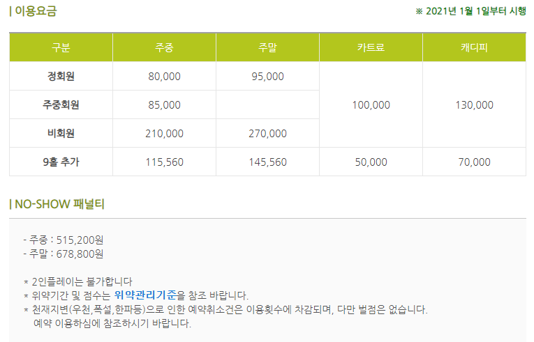 ◆ 크리스탈밸리cc 이용요금 안내 ◆