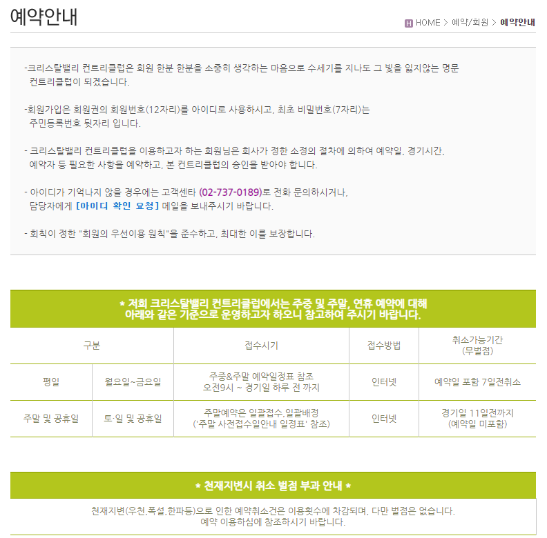 ◇ 크리스탈밸리cc 예약 안내 ◇